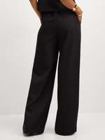 Elevate your style with our black pleated pants, featuring a puddle leg fit and side pockets. Dress them up with a shirt and heels or down with sandals and a tee.
