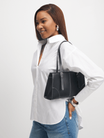 Introducing our sleek black shoulder bag. Perfect for everyday use with a spacious interior and adjustable strap for comfort. Stay organized and stylish on the go with this must-have accessory.