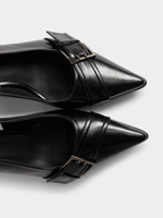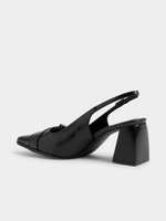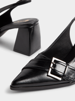Elevate your style with these sleek black slingback block heels. Featuring a stylish buckle detail, and adjustable slingback strap, these Exact heels are perfect for any occasion. Add them to your wardrobe for a chic finishing touch.
