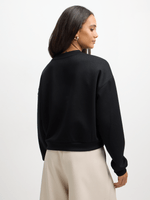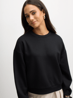 Get that effortlessly cool look with our Exact black cropped boxy sweat top. Made from soft touch fabric for ultimate comfort. This pullover features a relaxed fit, long sleeves, and a modern silhouette. Pair with the matching pants or jeans. Perfect for casual days out.