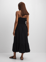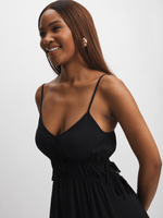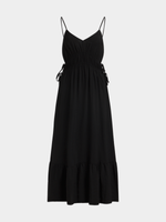 Embrace warm weather in style with this black strappy sundress from Exact. The tie detail at the waist adds a playful touch to this versatile piece. Made from a comfortable rayon blend, this dress is perfect for any occasion, style it with your favorite accessories.