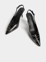 Step into style with our black studded slingback pointy heels. These sleek heels are perfect for adding a touch of edge to any outfit. With a comfortable fit and chic design, these heels will elevate your look effortlessly.