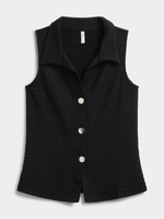 Elevate your look with our black long textured waistcoat from Exact. Made from a comfortable textured fabric, this waistcoat features a textured design, front buttons and v-neck. Mix and match with your favorite pieces for a chic ensemble.