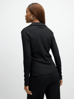 Stay stylish in our black textured top from Exact! Made from textured fabric, this top features button-through design, long sleeves, gold front buttons and v-neck with collar. Pair with the matching bottoms for a fashionable look.