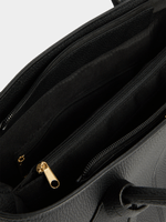 Get your hands on this chic black textured tote bag for a versatile and stylish accessory. This bag features a convenient hand strap, and an adjustabe crossbody strap. This trendy accessory is a must-have for any outfit.