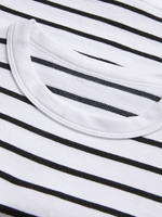 Stay effortlessly chic with our black and white striped seamless tee. Featuring a seamless design, fitted silhouette, short sleeves and crew neck. Your new go-to tee that's versatile and stylish.