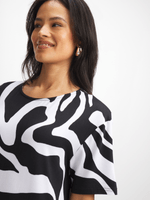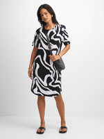 This Exact t-shirt dress is chic, easy to throw on and so versatile! Made from soft touch fabric, features a swirl print, short sleeves and curved hem. Perfect for a casual day out, pair it with sandals or sneakers.