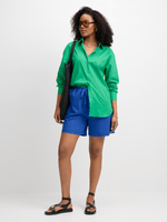 Get the perfect summer wardrobe with these blue pull-on shorts. Made from a comfortable linen blend fabric, featuring an elasticated waist with drawstring and side pockets. These shorts have a relaxed fit perfect for any casual outing. Pair with your favorite top for a laid-back look.