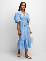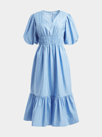 Elevate your style with this chic puff sleeve dress made from 100% cotton poplin. Featuring a smocked waist and tiered design, this dress is perfect for any occasion.