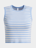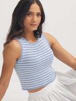 Get ready for summer with our stylish blue and white striped vest. Made from a comfortable soft viscose knit fabric in a trendy stripe, this sleeveless top is perfect for any casual outing. This versatile vest will keep you looking cool and trendy all season long.