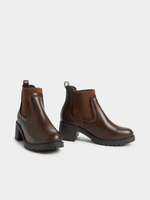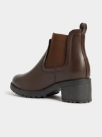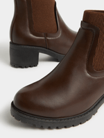 Step out in style with our Exact brown block heel chelsea boots. Featuring a ribbed elasticated panel, block heel, and a slip-on fit. Add these chic boots to your wardrobe today!