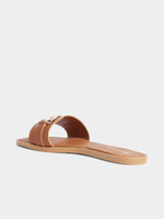 Step out in style with these sleek brown sandals from Exact. Featuring a chic metal gold buckle and easy slip-on style, these sandals are a versatile addition to your wardrobe. Pair with dresses, shorts or skirts to step out in confidence this Summer.