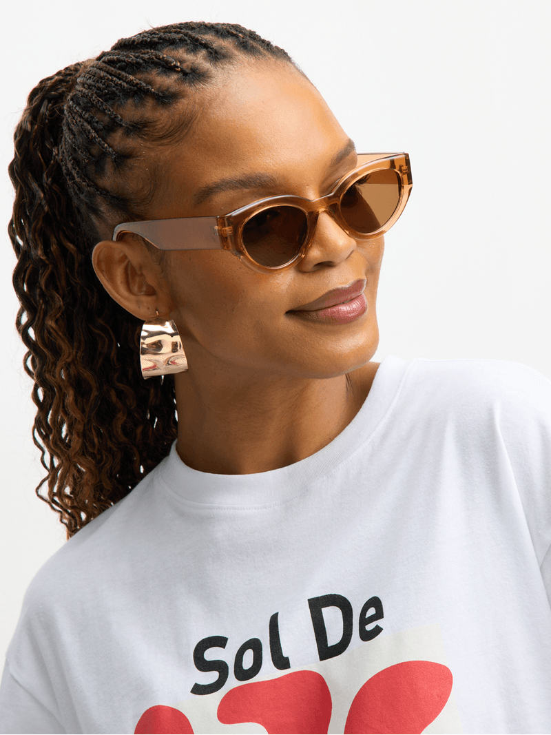 Elevate your style with these trendy brown catseye sunglasses. Featuring a brown resin frame and brown lens, these sunglasses are perfect for any sunny day outing.
