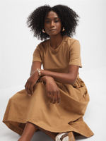 Get ready to stun in this Exact dress! Made with a combo of knit and woven fabric, featuring side pockets and a midaxi length. Feel fabulous and confident in this versatile piece.