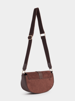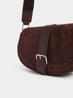 Elevate your outfit with this chic crossbody bag featuring a suede like inset and a stylish gold buckle. This bag is the perfect addition to your wardrobe. With a timeless design and adjustable strap, it's a versatile piece for any occasion.
