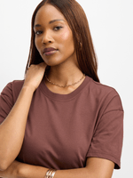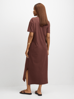 Enjoy the comfort and style of this brown maxi t-shirt dress from Exact. Made from single jersey cotton, this dress features a relaxed fit with a round neckline and short sleeves. Perfect for casual days, this dress can be styled up or down.
