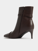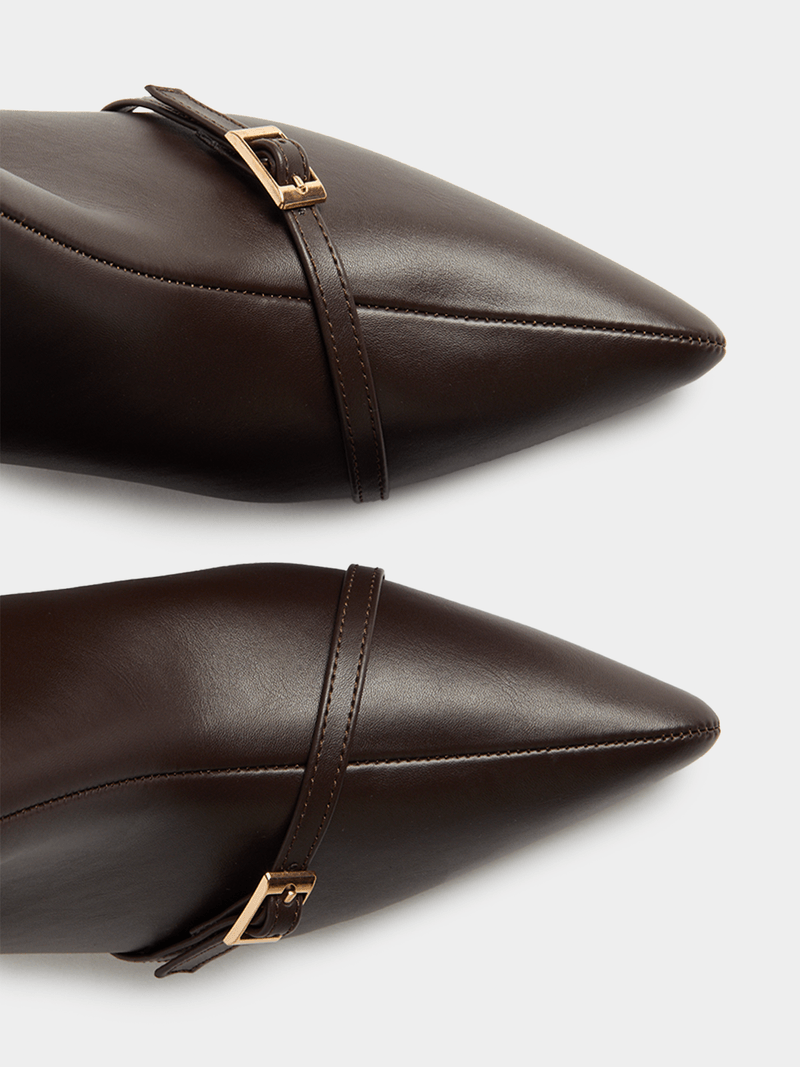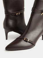Step out in style with our Exact brown pointy boot heels. These boots features a pointy design, side zip closure, and a stylish gold buckle detail for added flair. Treat yourself to the perfect pair of boots today!