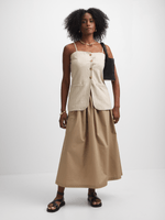 Elevate your wardrobe with this full poplin skirt. Made from 100% cotton poplin, it features a full style, side pockets, midaxi length, and a half elasticated waist for comfort. Complete with side pockets for added convenience.