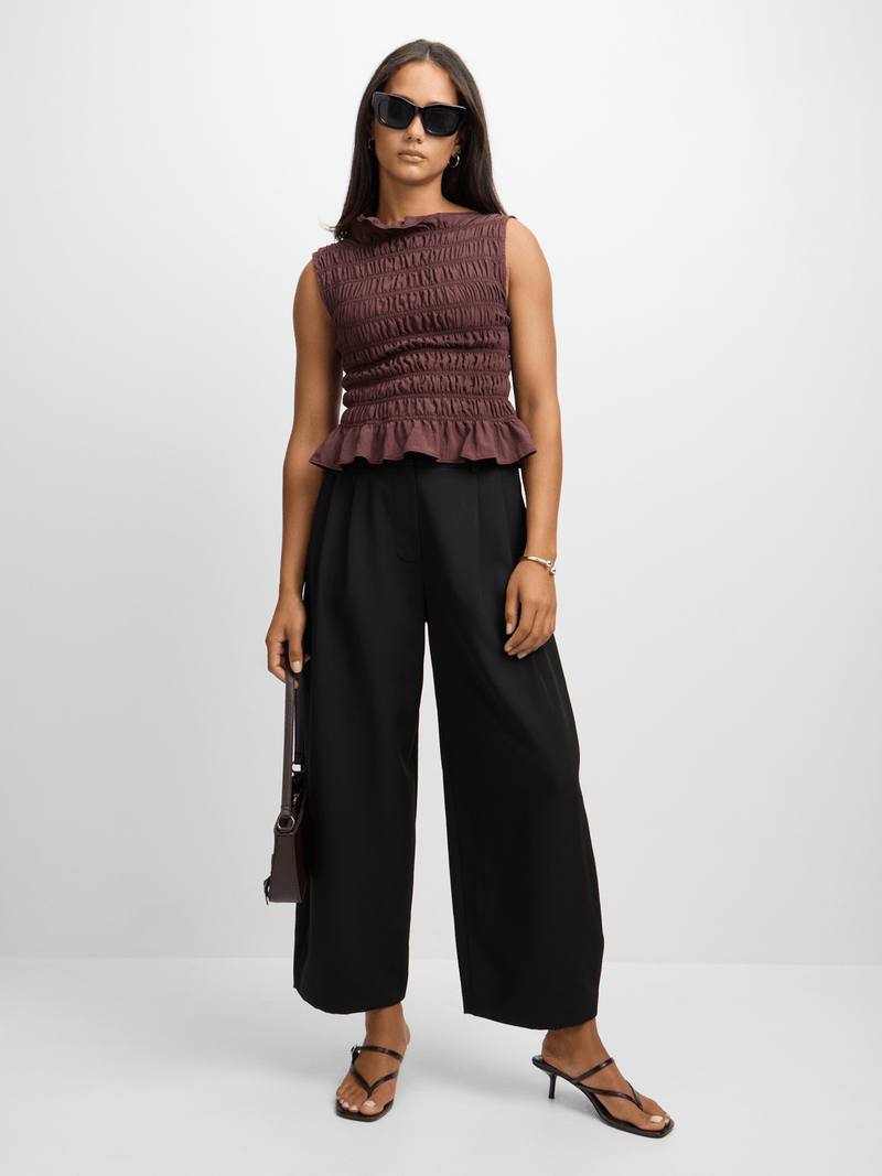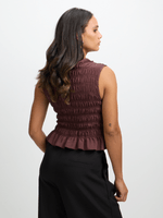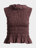 Get ready to turn heads in this stunning brown shirred top from Exact. Made from rayon blend fabric, this top features shirred detailing for a flattering fit. Perfect for any occasion, whether you dress it up or down.