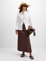 Get ready for a breezy summer with our brown slip skirt. Made from a comfortable linen blend fabric, this skirt features an elasticated waist with a drawstring for the perfect fit. Pair it with any top for a chic look, and stand out in this versatile skirt.