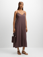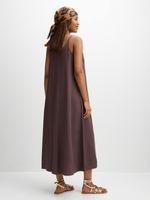 Embrace effortless style with our Exact brown strappy dress. Made from a linen blend fabric, featuring a flattering fit and comfortable design. This dress is ideal for all your sunny day adventures.