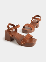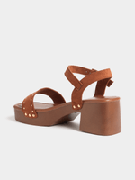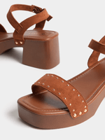 Step out in style with our Exact women's tan wooden heels featuring an adjustable ankle strap and studded details. These shoes offer a comfortable fit and a trendy platform heel. Perfect for everyday wear, these heels are a versatile addition to your wardrobe.