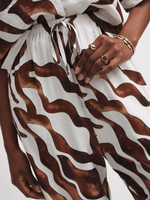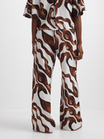 Upgrade your wardrobe with these Exact pull-on pants. Made from a comfortable rayon blend, these pants feature an abstract white and brown print design. Pair with the matching shirt and heels for an elevated look.