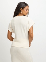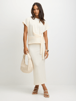 Elevate your casual look with this chic tie front top in a neutral cream colour, from Exact. Made with a textured cut and sew fabric, it features a stylish front tie detail for a trendy touch. Perfect for pairing with your favorite bottoms or the matching skirt.