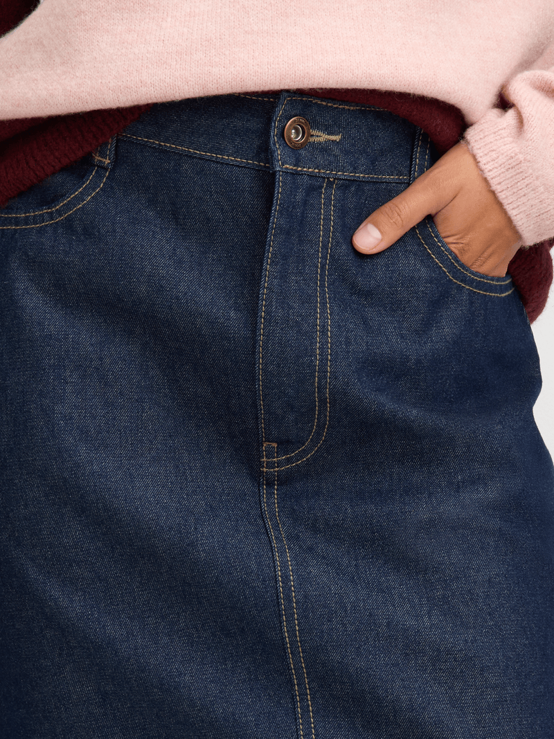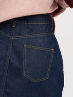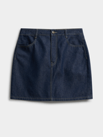 Introducing our Exact dark raw wash mini denim skirt. Made from denim, this skirt features a classic design, 4 pockets, and belt loops. Perfect for pairing with your favorite tops for a stylish look!
