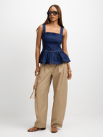 Get ready to elevate your denim game with our women's dark wash peplum top from Exact. Made from cotton denim fabric, this top features a flattering peplum silhouette and a convenient back zip for an easy fit. Pair it with your favorite bottoms for a chic look.