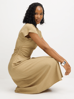 Look effortlessly chic in this fatigue ruched midi dress. Made from a textured fabric, this dress features flattering side ruching and a classic midi length. Perfect for any occasion, this dress is a versatile wardrobe essential.