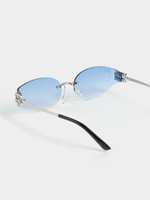 Embrace sunny days with these stylish frameless sunglasses. Featuring a sleek design and vibrant blue lenses, they're perfect for any outdoor adventure. Designed with comfort and fashion in mind, these sunglasses are a must-have accessory.