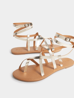 Get ready to step up your style game with our Exact gold wrap-around strappy sandals. With a wrap-around design and a comfortable fit, you'll be walking in style wherever you go. Embark on your next adventure with confidence.