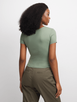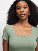 Refresh your closet with this versatile top, it is reversible and can be worn as a scoop neck or crew neck.
