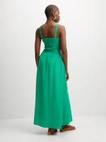 Effortlessly embody Summer vibes in our green sundress featuring a shirred bust for a flattering fit. Made from a comfortable rayon blend fabric, this dress is ideal for all your sunny day adventures.