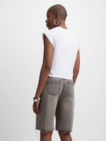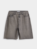 Get ready for summer in these grey wash denim bermuda shorts. Featuring a classic 5 pocket design, in a trendy bermuda length with raw hem. Pair them with your favorite top for a casual and chic look.