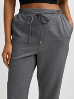 Stay stylish but comfortable in these Exact grey tapered pants. Made with a linen look fabric, these jpants feature adjustable toggles for a chic look, side pockets and an elasticated waist for an easy fit. Perfect for a casual day out.