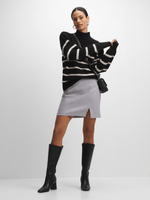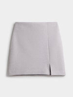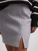 Introducing the Exact grey melange mini skirt. Made from soft melton fabric, featuring a flattering fit and fun front slit. Elevate your wardrobe with this versatile piece, this skirt can be dressed up or down for any occasion.