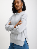 Stay cozy and stylish with our Exact grey melange sweat top. Made from cotton rich fleece fabric, this sweat top features a crew neckline and side slits for an added trendy touch. Pair with your favorite bottoms for a relaxed look.