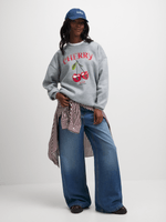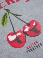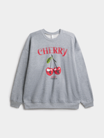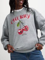 Get cozy in this grey graphic print sweat top from Exact. Made from brushed fleece fabric, with a unique cherry graphic design and oversized fit, this top is perfect for chilly days. Designed for comfort and style.