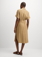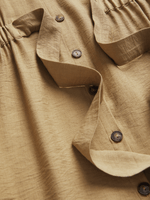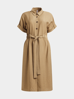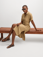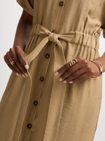 Elevate your wardrobe with our stylish khaki shirt dress. Made from a comfortable rayon blend, this dress features a tie front, elasticated sides, button up and side slits. Its versatile and pairs perfectly with sandals or heels.
