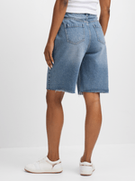 Get ready for summer in these mid-wash denim bermuda shorts. Featuring a classic 5 pocket design, in a trendy bermuda length with raw hem. Pair them with your favorite top for a casual and chic look.