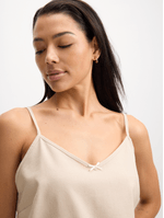 Experience ultimate comfort and style with our Exact natural cami sleepwear top. Made from a soft linen blend, this top features adujustable straps. Perfect for lounging or sleeping in, this top is a must-have addition to your wardrobe. Pair it with the matching shorts.