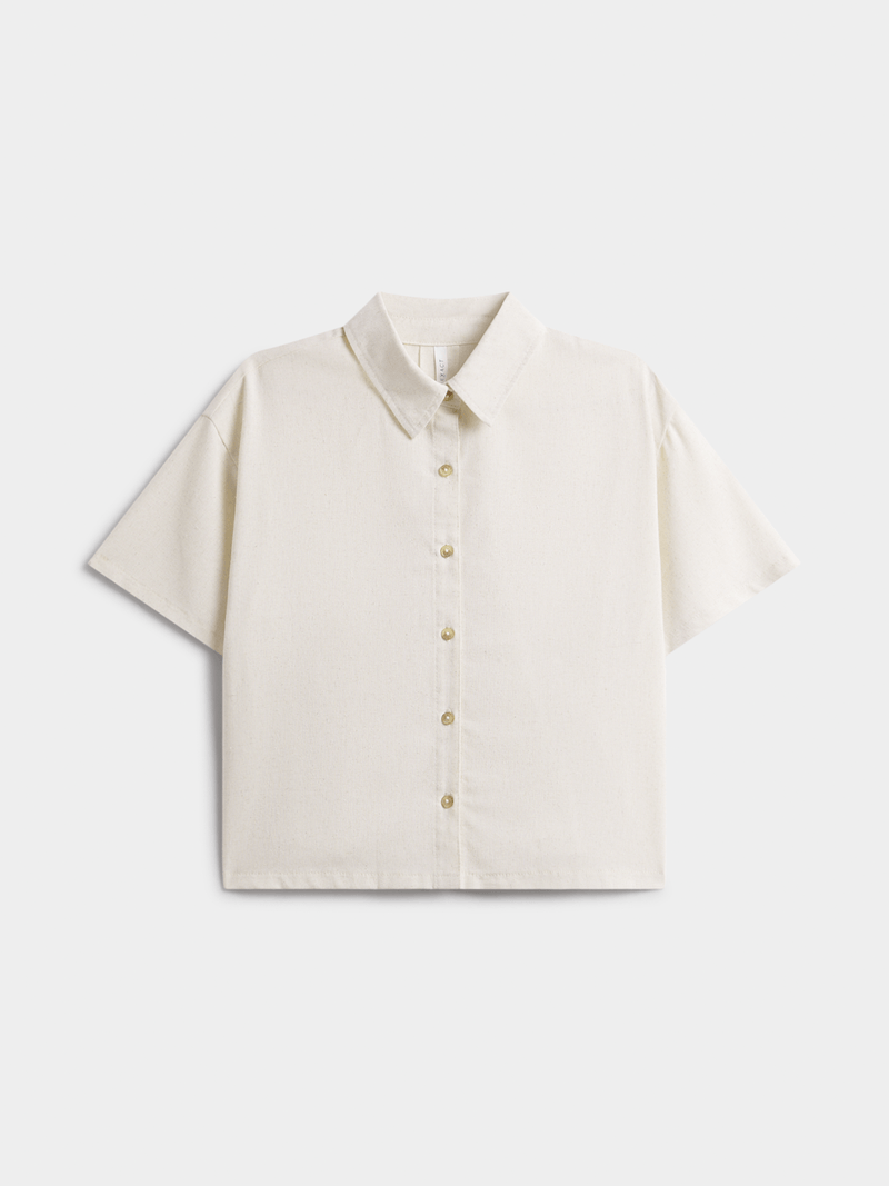 Get that effortlessly chic look with our Exact natural boxy shirt. Made from a soft linen blend fabric, featuring a boxy fit, short sleeves and button up, this shirt is perfect for a casual day out. Pair with your favourite bottoms or the matching shorts.