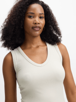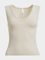 Introducing our versatile ribbed tank top in a natural stone shade. Made with soft ribbed fabric for a comfortable fit, this tank top features a v-neck for a trendy twist. Easy to style for any occasion. A must-have addition to your wardrobe.
