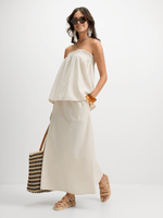 Get ready for summer in style with this natural strapless top. Made from a comfortable linen blend fabric, with an elasticated bust for an easy fit. It's perfect for those hot days. Pair it with the matching skirt for a co-ord look we love.