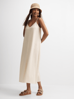 Embrace effortless style with our Exact natural strappy dress. Made from a linen blend fabric, featuring a flattering fit and comfortable design. This dress is ideal for all your sunny day adventures.