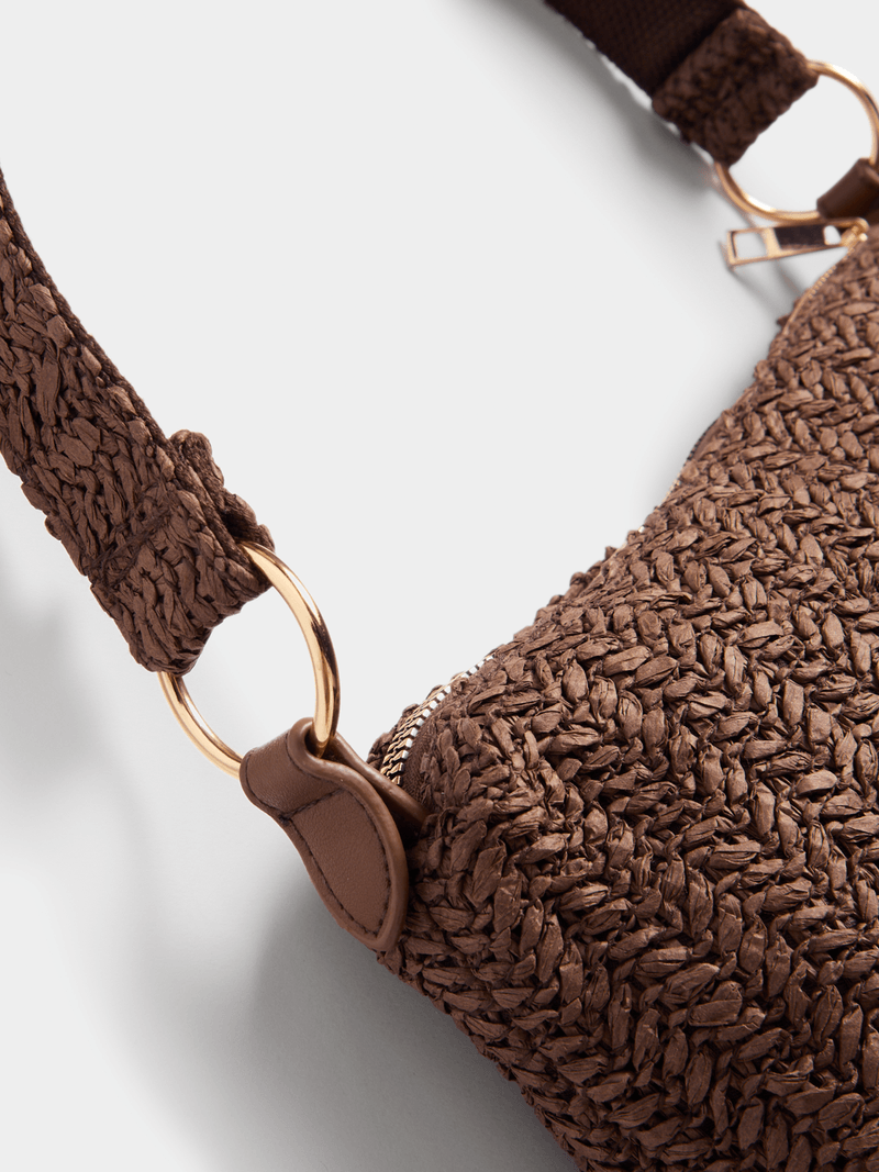 Get Summer ready with this chic shoulder bag made from straw look material. Featuring a trendy design and an adjustable crossbody strap, its the perfect bag for all your adventures this Summer. Perfect for any occasion, whether a day at the beach or a night out with friends. Don't miss out on this fun accessory!