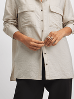 Elevate your wardrobe with our Exact natural utility shirt. Made from a soft rayon blend for ultimate comfort. Features include a classic collar and button-down front with utility pockets. Versatile, stylish and perfect for any occasion.