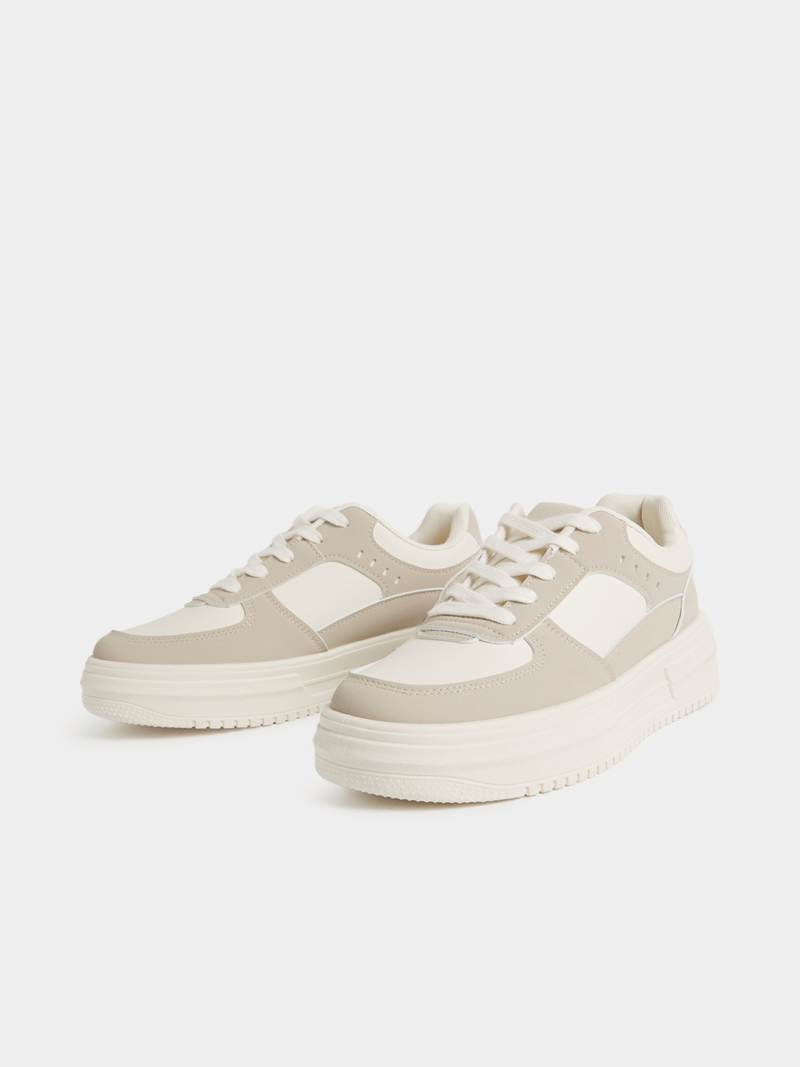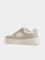 Step up your style game with these Exact natural and white sneakers. These sneakers feature a colourblock design, platform sole and white lace up, perfect for any outfit.